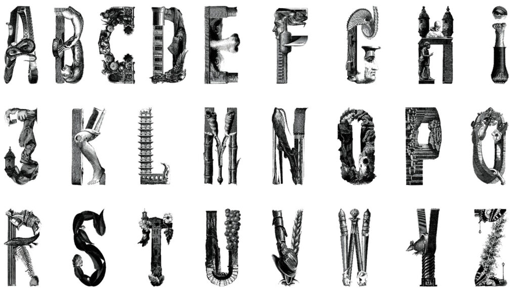 In his 2014 article for Design Observer, design critic Rick Poynor revisits The Mysteries of France (1964), a thousand-page compendium of eerie landmarks and macabre folklore. For its divider pages, Polish graphic artist Roman Cieslewicz created a fantastical Gothic alphabet. Each letter is alive with mystery, collaged from fragments of old engravings. Explore this typographic curiosity.