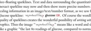 Some comments are exercises in pure logic: “‘Sparkline/glucose/128’ seems to have poor flow. In a traditional statement, ‘Glucose 128’ is short for ‘The Glucose level is 128’ or similar. (Your) sparkline has a more awkward interpretation, passively asserting, ‘Here is some data, which is on Glucose, and has an end value of 128.’ A better arrangement would be ‘Glucose/sparkline/128.’ The corresponding meaning would be ‘The Glucose chart has a latest level of 128.'”