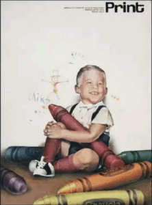 This piece, one of several I did for Print‘s annual student cover design competition, was just about the last time I undertook an ambitious illustration, this one a self-portrait based on a old black-and-white picture my mom commissioned when I was five. I still like it, although it isn’t very good. I lost the competition, of course, and retreated into the comfort of typography for, well, the rest of my life.