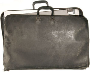 Actual portfolio, cardboard and fake leather, 34 by 42 inches, circa 1978.