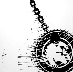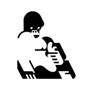 My selection of this subject turned into a problem when the second part of the assignment was revealed: to show the animal in motion. Gorillas are basically immobile. My way around this was a rare instance where I came up with a mildly funny solution to a class assignment. Note that the lettering on the tire is pretty much the same as the word “Kurt” in the Schwitters exercise. I really knew how to paint those kind of letters.