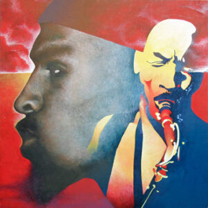 We’ll start with this portrait of jazz saxophonist Sam Rivers, copied from photographs on his album The Complete Blue Note Sessions. This is the kind of thing upon which I had built my reputation by the time I graduated from high school: painstaking realism in the style of Bernie Fuchs, Bob Heindel and especially Mark English. There wasn’t any instruction in this kind of thing available at UC. I did it after hours, as a private exercise in self indulgence. One never heard names like Fuchs, Heindel and English invoked in our classes.