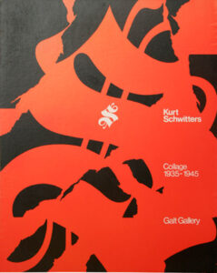 In an inversion of actual practice, formal exercises were often developed into preemptive responses to imaginary assignments for nonexistent clients. In this case, the Schwitters exercise became a poster for a notional exhibit at a gallery I invented that got its name either from the hero of Ayn Rand’s epic novel Atlas Shrugged (which I read six times in my five years of college, sorry) or from the fact that I had only capital Gs left in my collection of presstype. This may account as well for the date range, oddly late in Schwitters’s career for such a show. I am relieved that at least the artist was still alive in 1945; content was a pretty malleable thing for me in those days and I wouldn’t have checked.