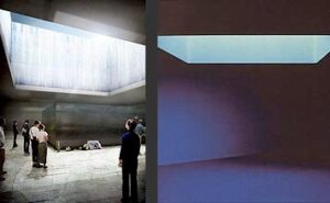 I believe these images speak for themselves. When a German photo agency mistakenly released new renderings of the World Trade Center memorial design yesterday, they opened a pandora’s box because the architects and planners involved did not have time to prepare their sound bites of design rationalization. I hope they will at some point acknowledge the “influence” of James Turrell, our greatest designer of spiritual spaces.