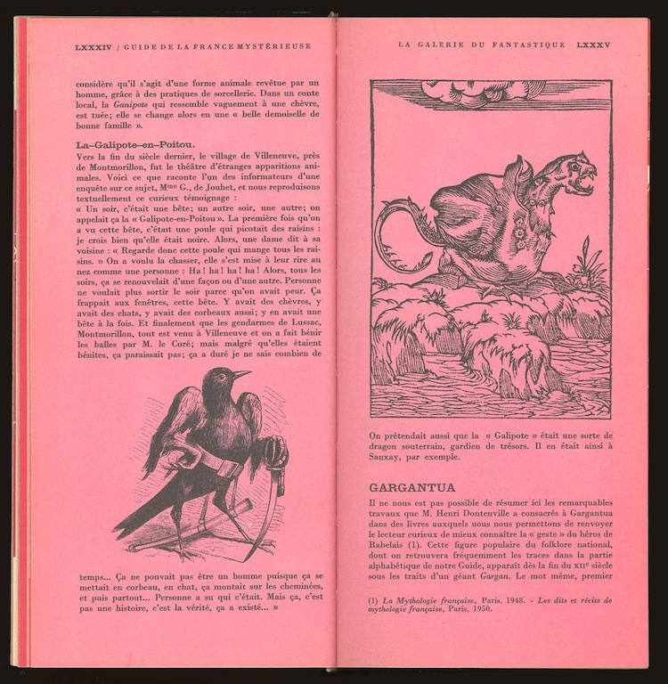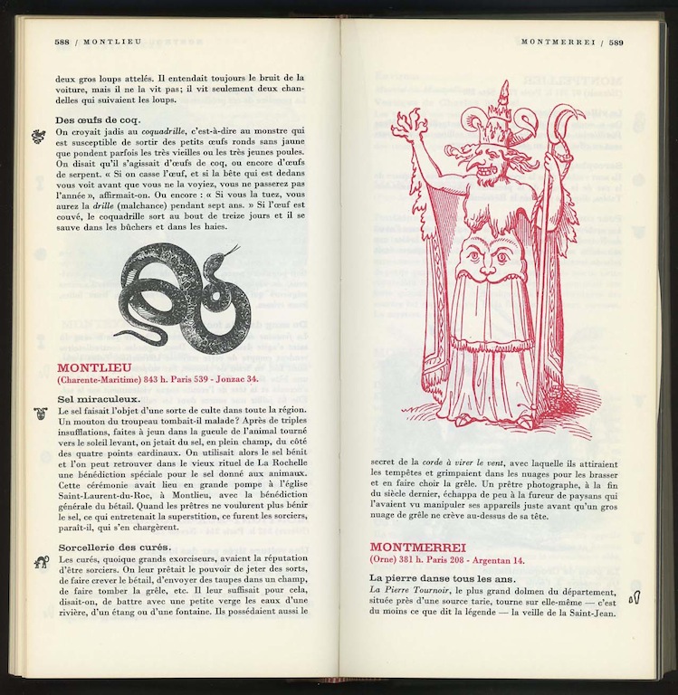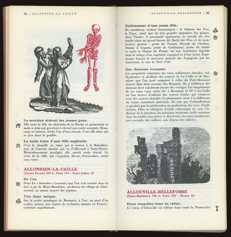 At more than a thousand pages, the Guide de la France mystérieuse is a monster of a travel book. It’s hard to imagine tourists lugging this tombstone around France in their backpacks in search of strange locations and monuments of macabre history. Yet the volume, published by Claude Tchou in 1964, must have been a hit. The gazetteer spawned a series of spin-off guides to the mysterious regions of France and the original tome was reissued as recently as 2005.