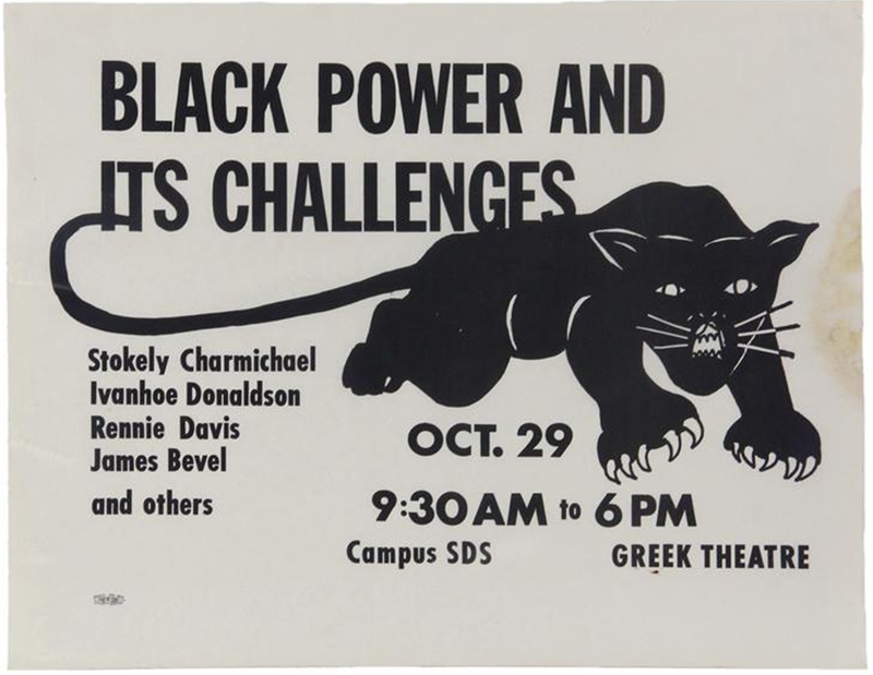 Poster for SDS “Black Power and its Challenges” conference at UC Berkeley, October 29, 1966, designed by Lisa Lyons; poster courtesy Lisbet Tellefsen collection, image by author.